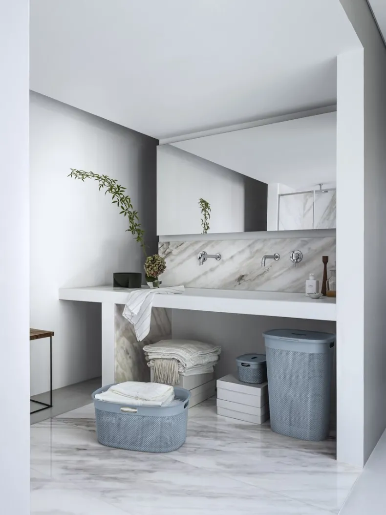 De Curver Filo wasmand met een inhoud van 55 liter is de perfecte oplossing voor een opgeruimde wasruimte. Dankzij de geperforeerde structuur blijft je wasgoed goed geventileerd en fris. Het stevige scharnierende deksel opent tot 100° en blijft netjes op zijn plek, zodat je eenvoudig je was kunt toevoegen. Het moderne blauw/grijze design past moeiteloos in iedere badkamer of wasruimte en zorgt voor een stijlvolle uitstraling!