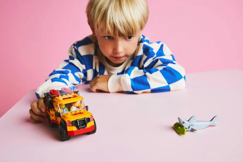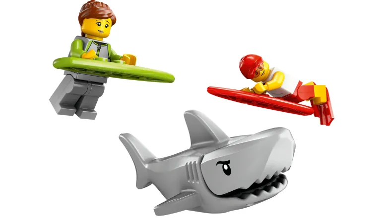 - Inclusief minifiguren van een strandwacht en een surfer en een haai