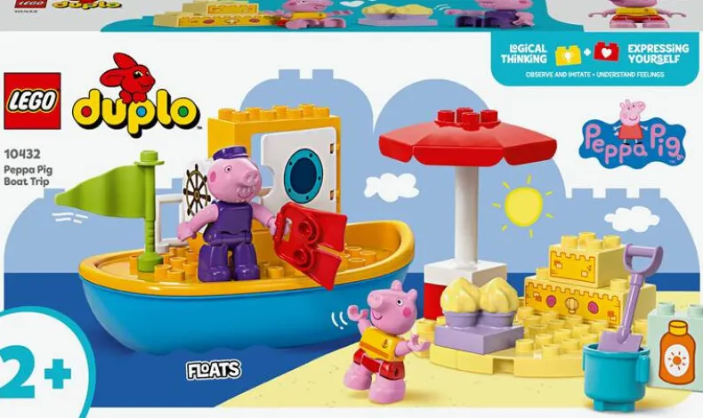 Met het LEGO® DUPLO® Peppa Pig bootreis speelgoed (10432) gaan peuters op een spannend bootavontuur met Peppa en Opa Pig! Dit vrolijke speelgoed is perfect voor kinderen vanaf 2 jaar en zit boordevol accessoires die uren speelplezier bieden. Terwijl Peppa zonnebrandcrème opsmeert, schelpen zoekt en een zandkasteel bouwt, ontwikkelen peuters hun fijne motoriek en hand-oogcoördinatie. En de pret stopt niet daar: deze boot drijft echt, ideaal voor spetterende momenten in het water!