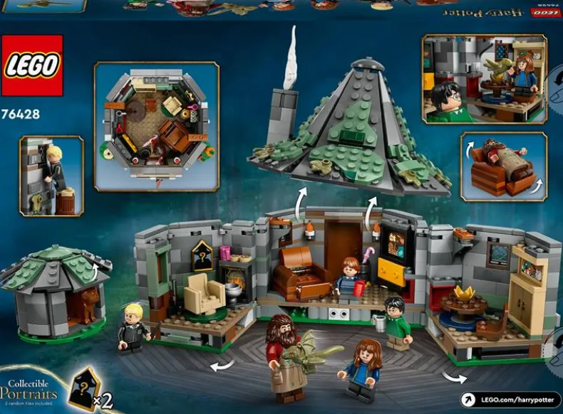 Beleef opnieuw het iconische onverwachte bezoek van Harry Potter™ en zijn vrienden aan Hagrids huisje met deze LEGO® Harry Potter set (76428)! Dit bouwbare huisje van Rubeus Hagrid™ opent zich volledig om het gedetailleerde interieur te onthullen, inclusief een afneembaar dak en uitklapbare stoel voor Hagrid. Ontdek verborgen details zoals een drakenei, Hagrids paraplubak en unieke Zweinstein™ portretten die je kunt verzamelen. Klaar om de Tovenaarswereld thuis tot leven te wekken? Dit betoverende speelplezier wacht op jou!