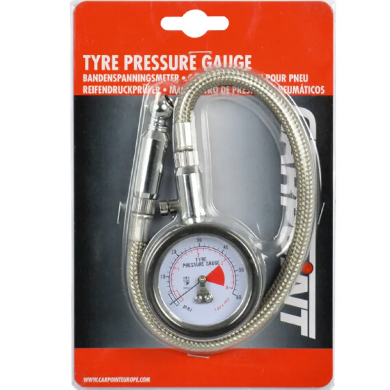 Bandenspanningsmeter Hafner Professionele bandenspanningsmeter. Met flexibele slang Schokbestendig. Met terugstelknop.