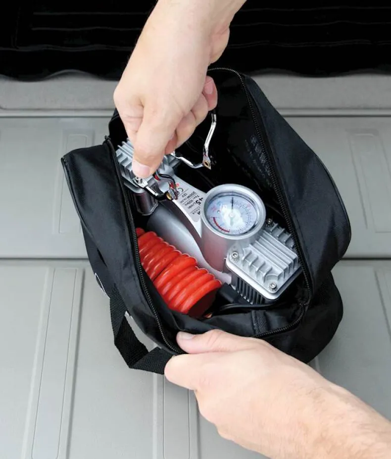 Hoge capaciteit, 45 l / min – Max 7 bar – 100 PSI. Specifiek voor grote banden (off-road, RV, SUV, campers, bestelwagens …) en universeel voor het oppompen van andere kleinere banden of opblaasbare producten (luchtbedden) , ballen …). Metalen behuizing met 2×30 mm aluminium cilinder en zuigers. Metalen manometer. 250 cm kabel met sigarettenaanstekerplug. Met Led-licht. Metalen opvouwbare handgreep. 70 cm opblaasslang met schroefaansluiting Inclusief accessoires: – Spiraalvormige PU-slang van 360 cm. Connector voor batterijclips. Nylon gag voor opslag van compressor en accessoires. 2 mondstukadapters en 1 sportnaald.