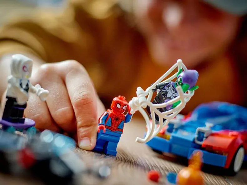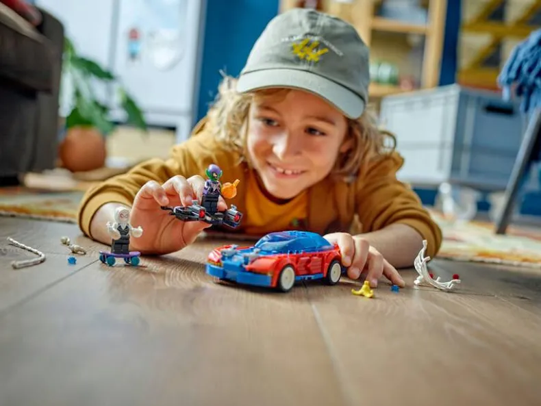 Met deze LEGO set kunnen kinderen helemaal opgaan in hun eigen Marvel verhaal. Spider-Man’s racewagen heeft plaats voor twee minifiguren en Ghost-Spider’s skateboard voegt extra actie toe. De set zit vol stoere functies zoals de pompoenbommen van Green Goblin en de afneembare onderdelen van de Spider-Man auto. Dankzij de LEGO Builder app wordt bouwen nóg leuker – je kunt inzoomen, draaien en je voortgang volgen. Een perfect cadeau voor alle jonge superhelden en een top toevoeging aan elke LEGO Marvel collectie!