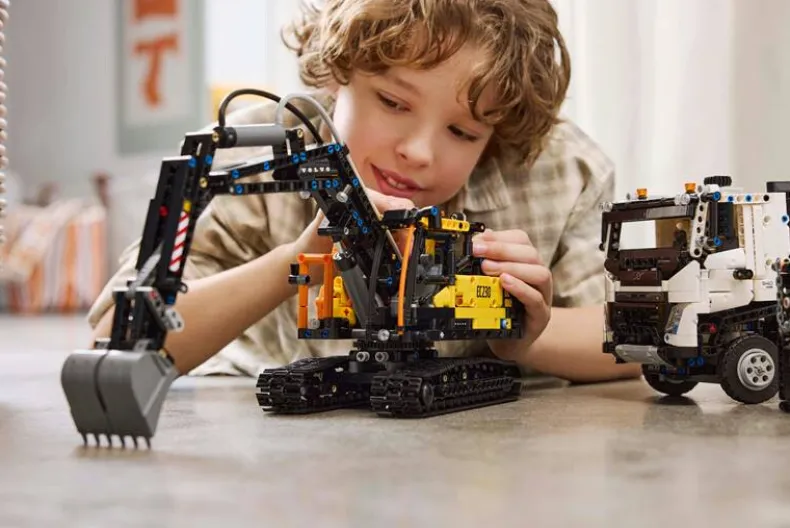 De EC230 graafmachine zit vol met authentieke functies, zoals een cabine die opent, 360 graden rotatie op zijn rupsbanden, en een pneumatische pomp om de laadschop op en neer te bewegen. Kinderen kunnen doen alsof ze op een moderne bouwplaats werken en zelfs het oplaadstation optillen en laten zakken met behulp van de schop en kettingen. Met de LEGO Builder app kunnen bouwers in 3D-modellen inzoomen en hun voortgang bijhouden voor een nog interactievere ervaring.