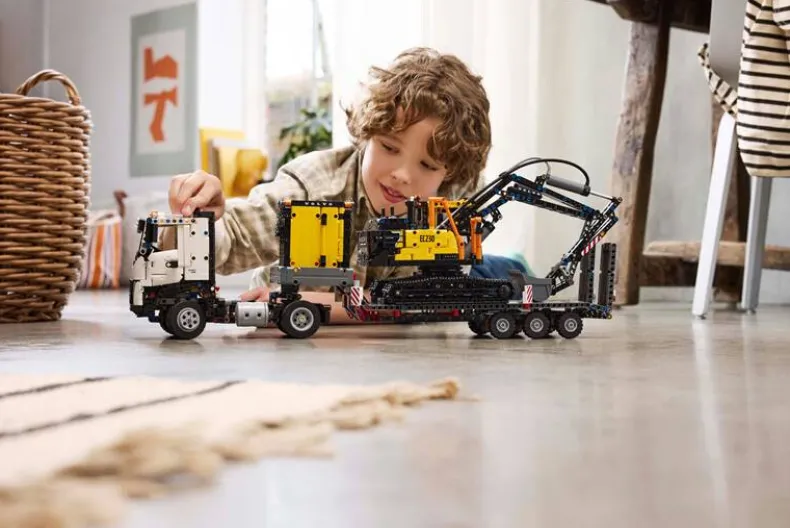 Ontdek zwaar werk met de LEGO Technic Volvo FMX truck & EC230 elektrische graafmachine