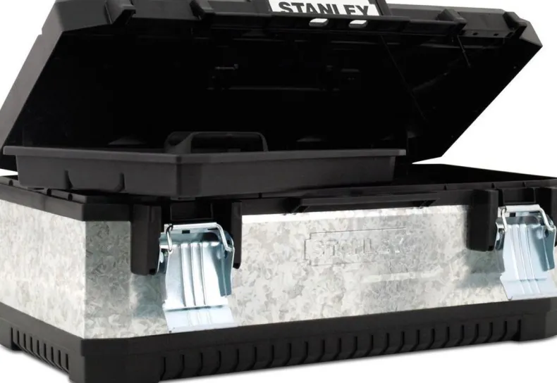 Metalen/kunststof gereedschapskoffer voor het handig opbergen en transporteren van gereedschappen met uitneembare gereeschapsbak